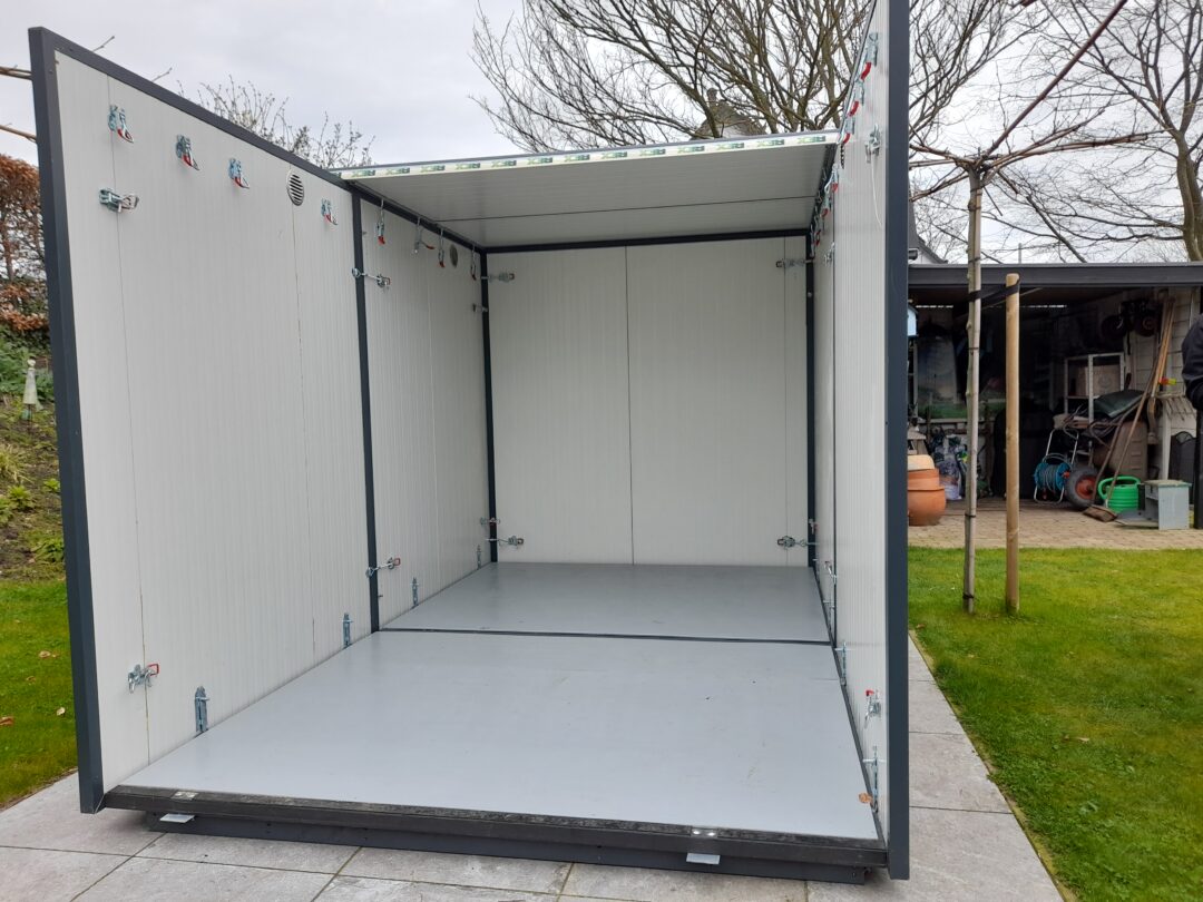 Tijdens een verbouwing of renovatie van je huis kan de thuisbox perfect gebruikt worden voor het veilig opslaan van gereedschap en bouwmaterialen. Ben je je huidige garage of schuur aan het verbouwen? Dan kun je er natuurlijk ook voor kiezen om je fietsen, tuinmeubilair en tuingereedschap erin op te bergen.Ook rondom een verhuizing kan een extra schuur prettig zijn om bijvoorbeeld op je gemak spullen te sorteren en in en uit te pakken. Ga je bijvoorbeeld een nieuwbouwhuis betrekken en is je garage of schuur nog niet klaar of heb je simpelweg wat extra opslag nodig voor gereedschap? De thuisbox is dan de perfecte oplossing. Afhankelijk van het type opslag dat je nodig hebt en de spullen die je opslaat, kan je kiezen voor de reguliere stalen thuisbox of voor de geïsoleerde en geventileerde thuisbox ISO. De verschillen worden hieronder verder toegelicht.